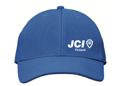 Baseball-mallinen JCI Finland -lippalakki tarrakiinnityksellä. Lippalakin materiaalina polyesteri miniottoman, joka on kulutusta kestävä ja tuntuu miellyttävältä päässä. Värivaihtoehtoina sininen ja valkoinen.